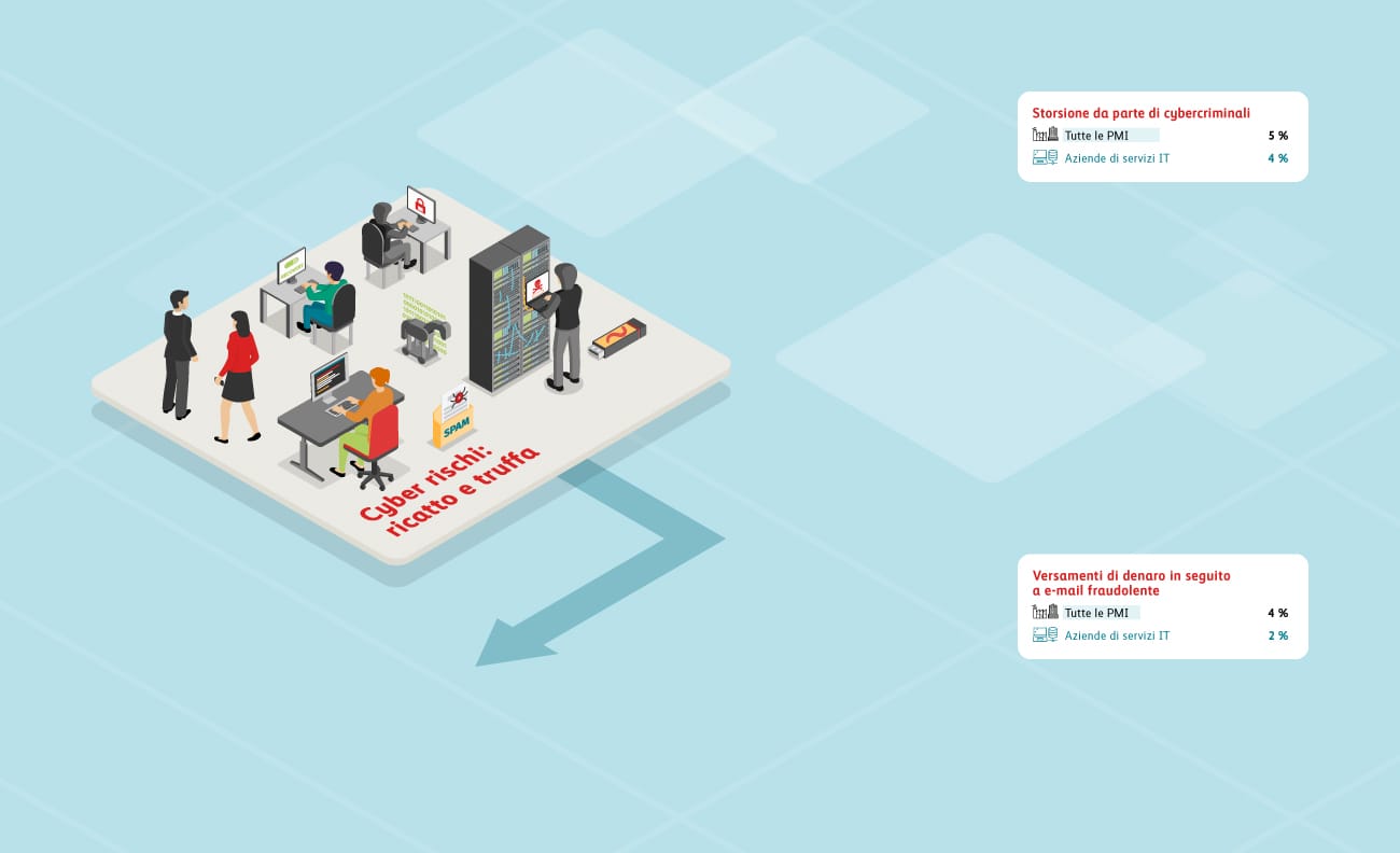 Molte PMI in Svizzera non considerano la cyber sicurezza una priorità. Solo il 33% delle aziende la considera (molto) importante - un calo significativo rispetto al 47% dell’anno precedente. Eppure gli attacchi informatici possono colpire aziende di qualsiasi dimensione: il 4-5% delle PMI è stato vittima di cyber criminalità negli ultimi anni.